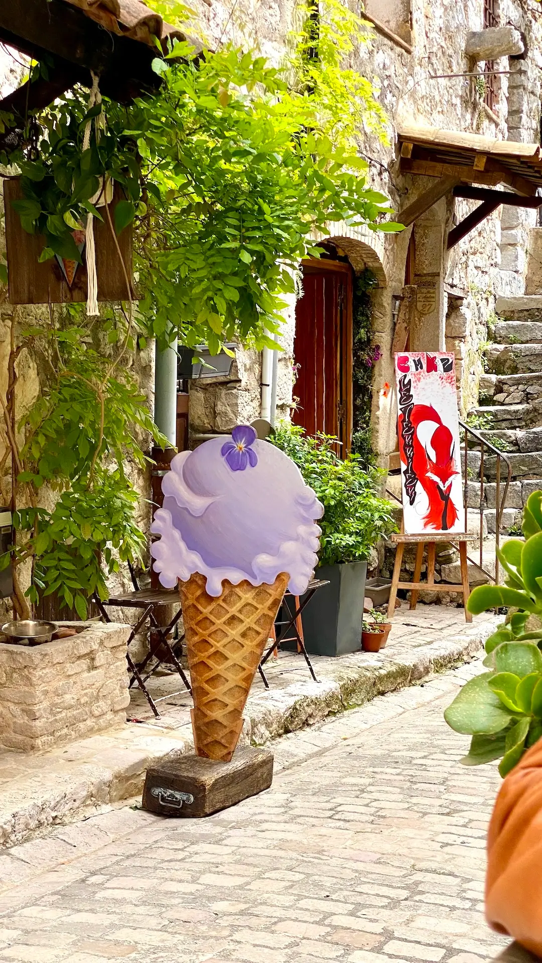 Tourrettes-sur-Loup znane jest jako „Miasto Fiołków” – kwiaty te uprawia się tu od XIX wieku, a co roku w marcu odbywa się Fête des Violettes. Podczas naszego spaceru trafiliśmy na lodziarnię oferującą lody fiołkowe z karmelizowanym kawiatem fiołka na wierzchu – dość nietypowy, ale ciekawy smak. Wyjeżdżając z Tourettes warto zajrzeć do Bastide aux Violettes, niewielkiego muzeum oraz miejsca hodowli fiołków – miłe dopełnienie wycieczki do "miasta fiołków".